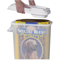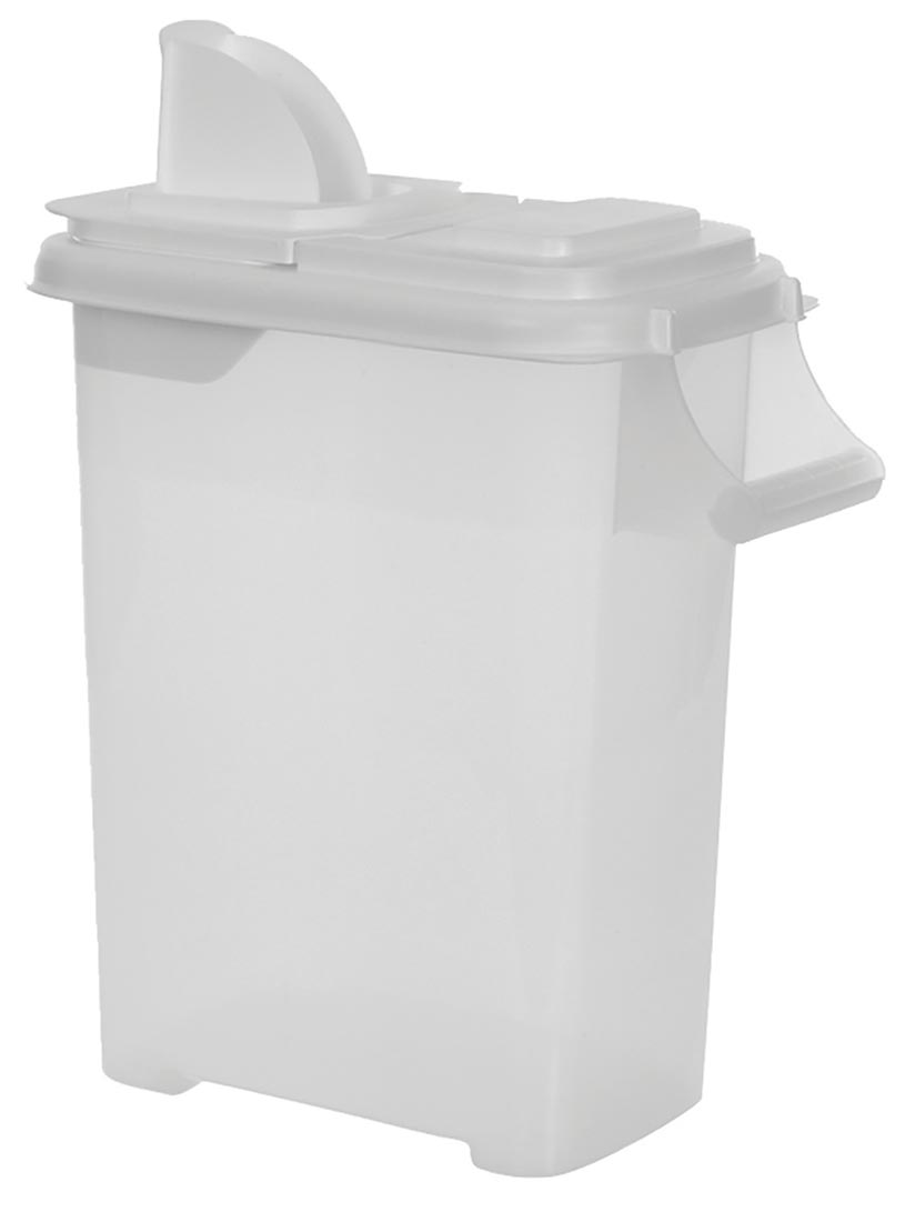 • Patented dual-function lid. Scoop or pour!